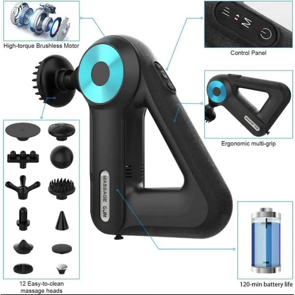 Black Massage Gun, Theragun, Proffesional Massage Gun 12 Attachment, For Massager