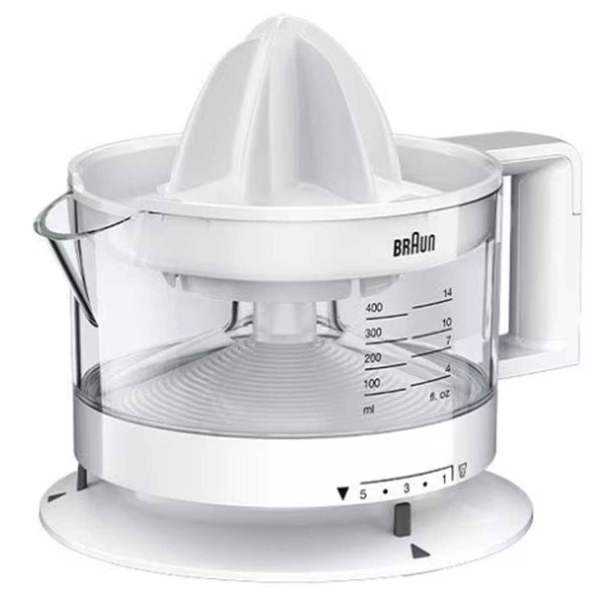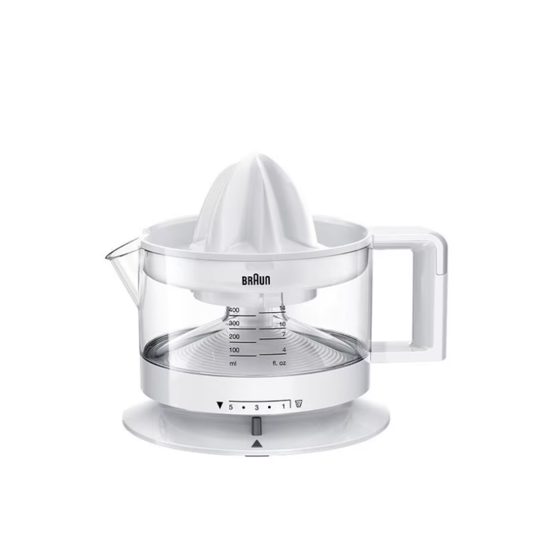 No additional buttons – easy handling by simply pressing down the fruit to start and lifting it off to stop.