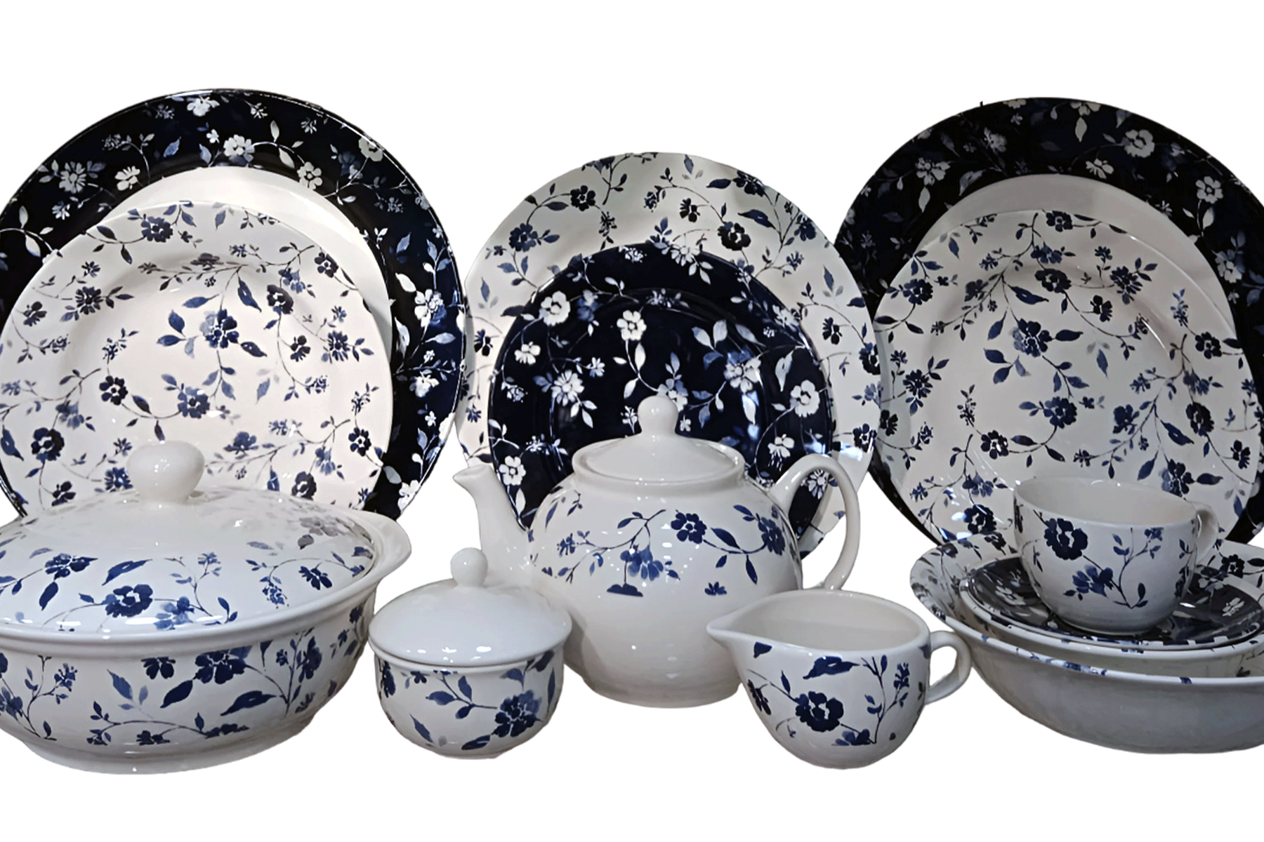 Claytan Crystal Blue (+VE) All Over 61Pcs Dinner Set