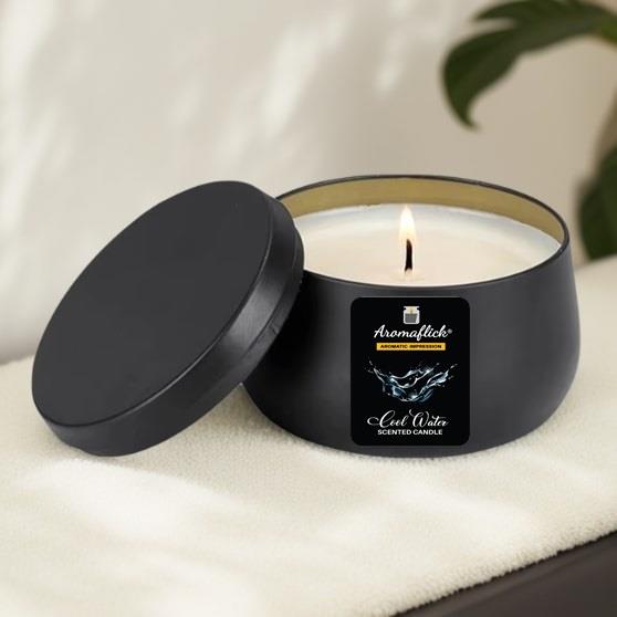 Cool Water Scented Candle in Black Tin – Fresh & Aquatic Aroma