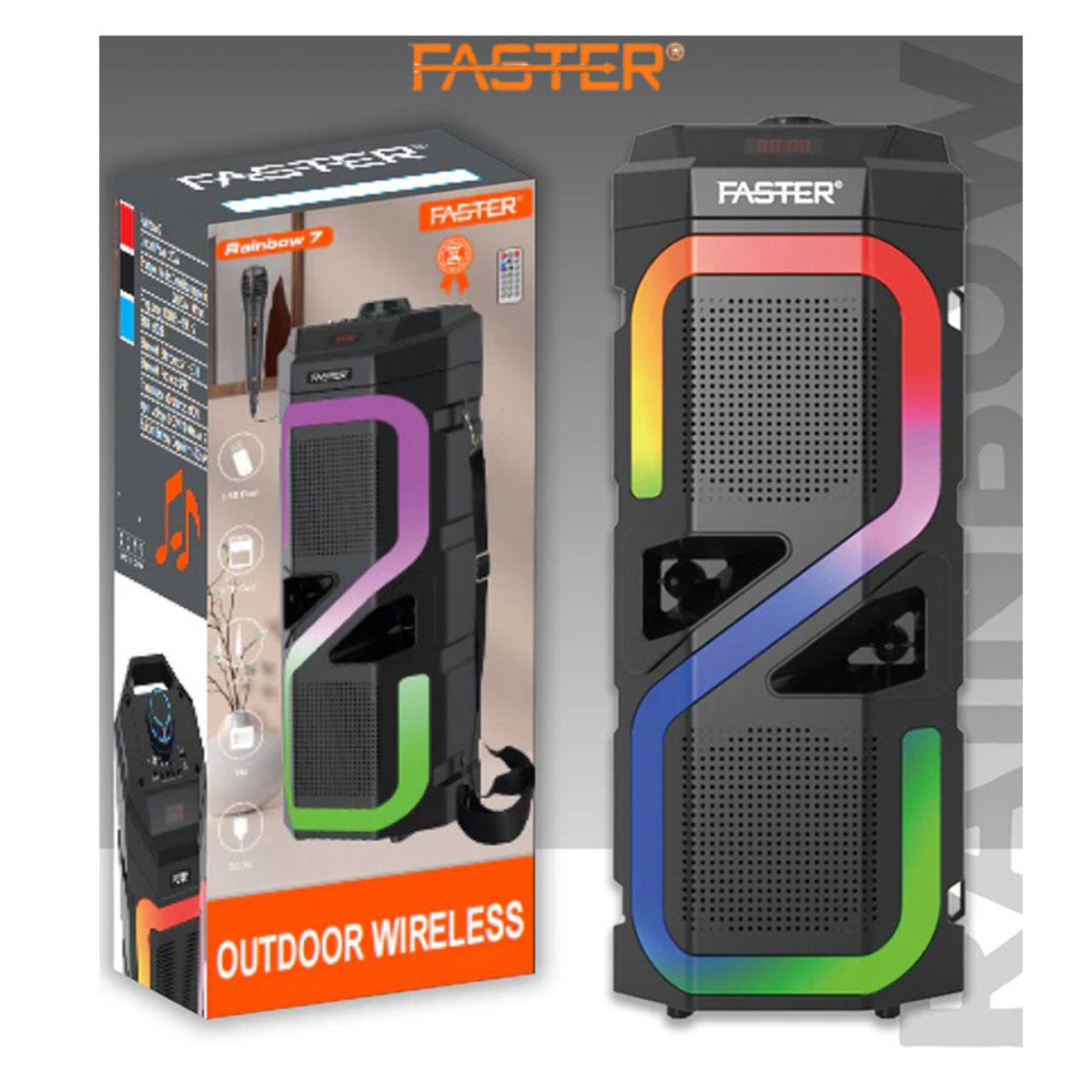 FASTER Rainbow 7 Powerful Bass Wireless Speaker With Mic 20w