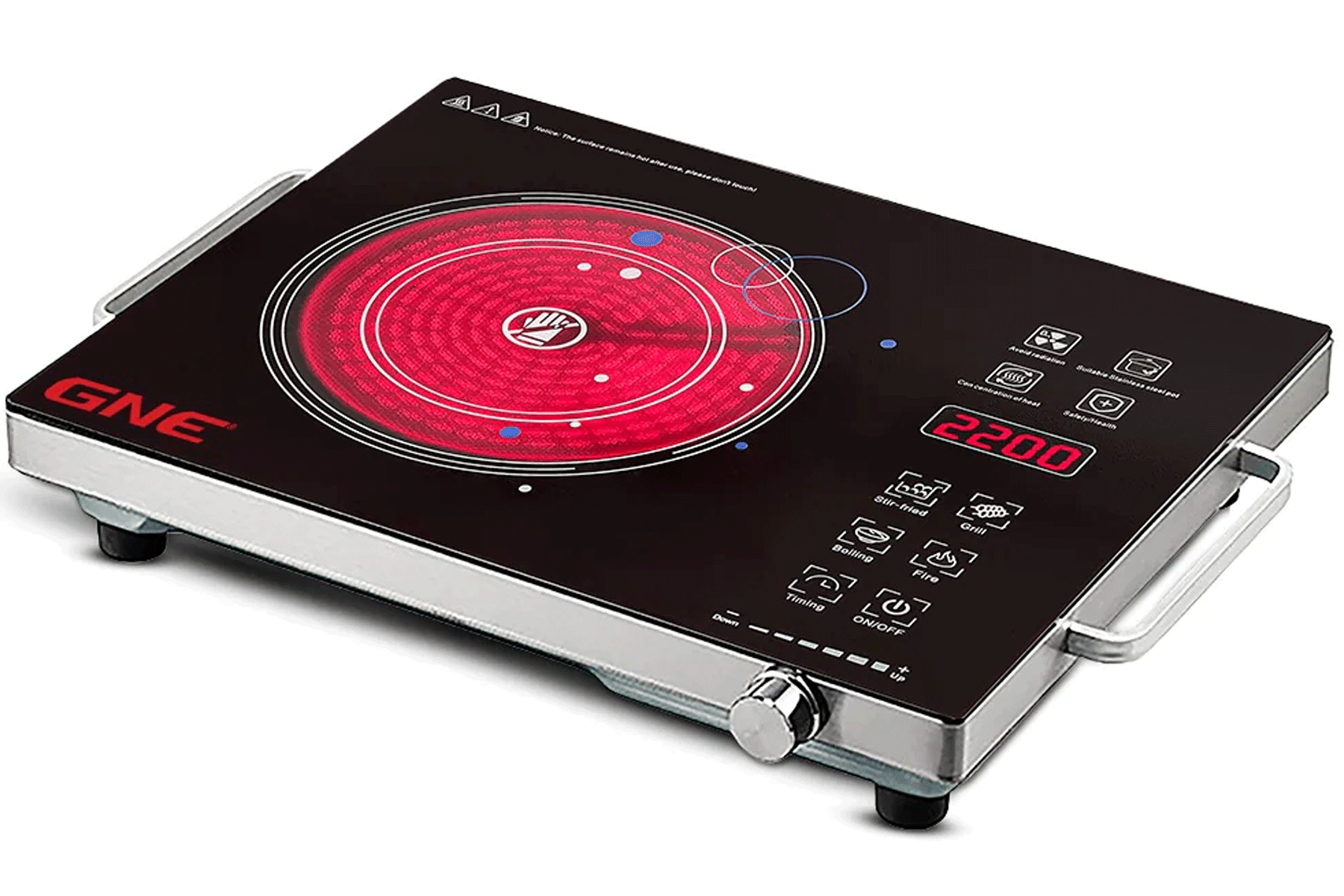 Gaba National Infrared Cooker - GN-143/22 Features: A Grade black tempered glass plate Aluminum allow SUS body handle Sensitive and knob control model 4 numbers digital display Heating element: infrared radiant heater 24 hours preset: 3 hours timer
