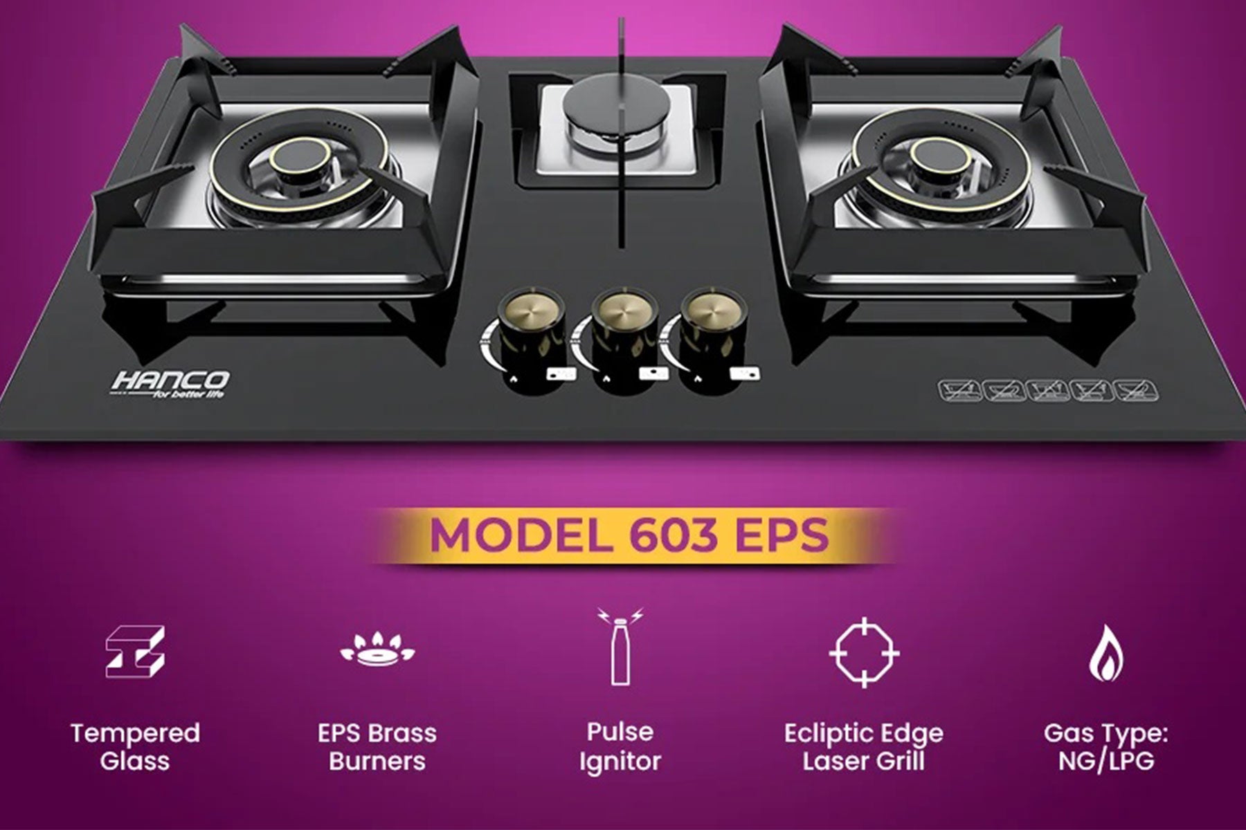 HANCO HV-603EPS 3 Burners,730 mm, Imported 8mm Tempered Glass, Imported EPS Burner Tecnology, Ultra Heavy Grill