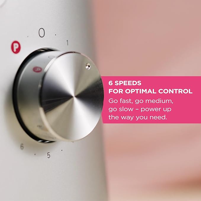 The Kenwood HomeBake Stand Mixer’s tilt-head design makes switching attachments and adding ingredients effortless. Shown here with the stainless steel whisk, it’s perfect for recipes that require precision and convenience. The sleek silver finish and intuitive speed control dial combine style with functionality, making it a standout addition to any modern kitchen.