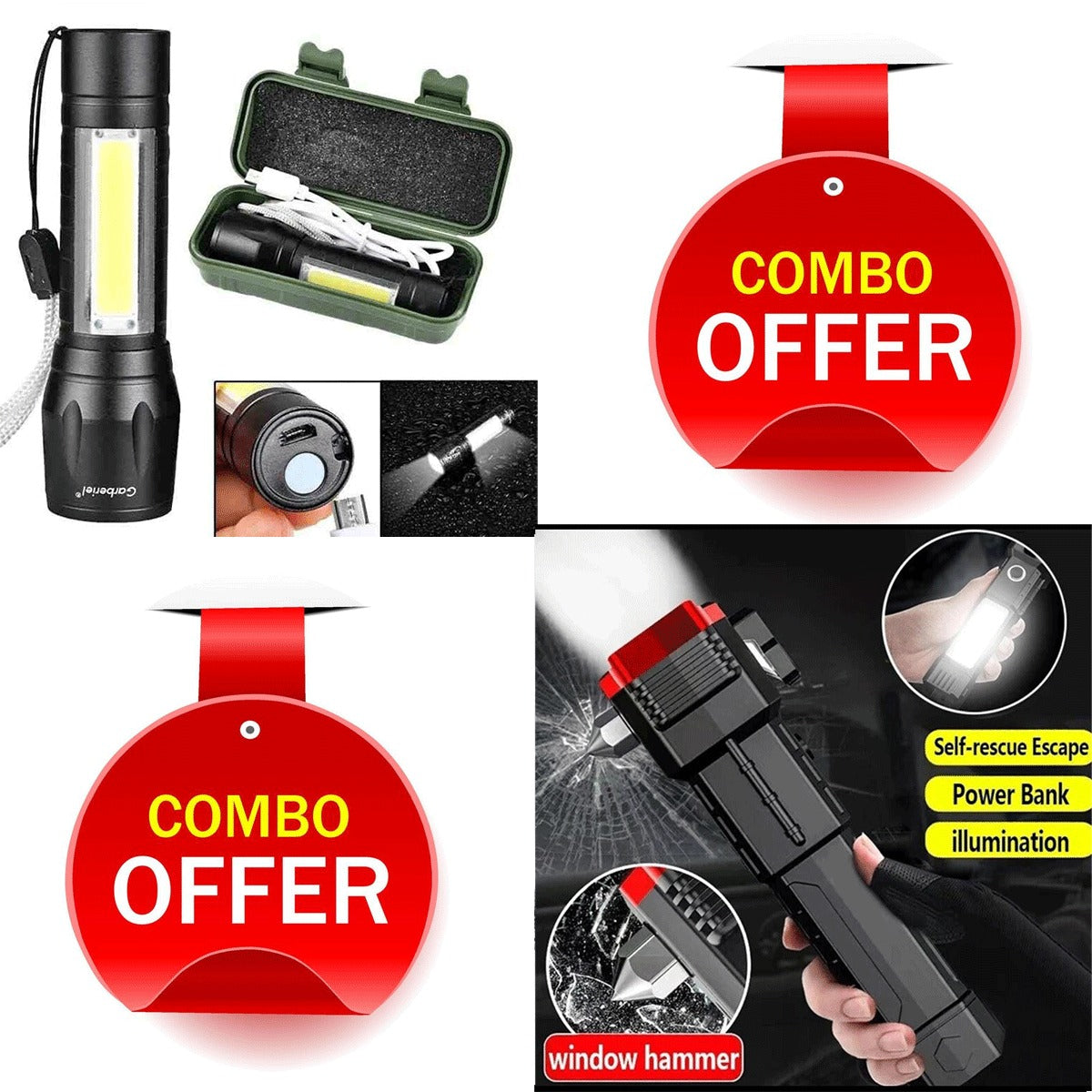 Multifunction Portable Led Flashlight Rechargeable + LED Flashlight, Super Bright 3 Light Modes