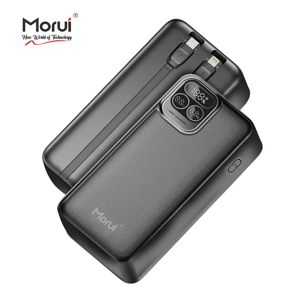 Introducing the Morui Powerbank, a dependable and enduring battery solution for your mobile devices. this power bank guarantees prolonged usage without the necessity for frequent recharging. With 22.5w super fast charging and multiple USB ports, including Type C, it offers adaptable compatibility for various devices, such as Airpods and mobile phones. The digital display allows for convenient battery status monitoring, making it a universal device charger suitable for all phones. Stay powered up on the go with the Morui Power bank.