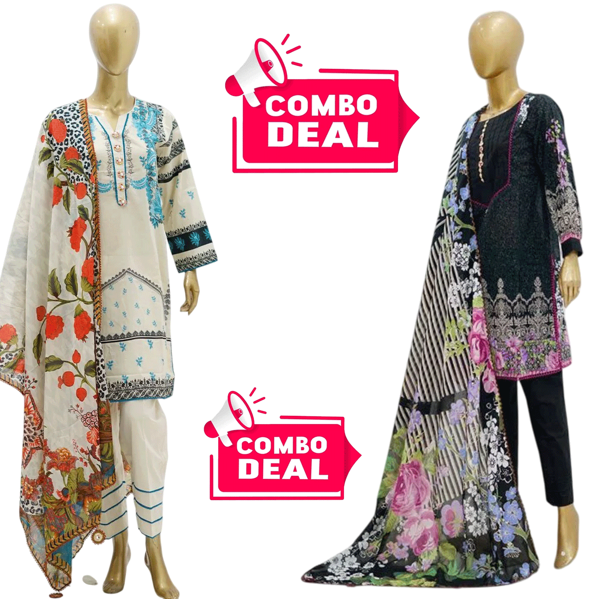 Pack of 2 Surmawala Lawn | Printed Fabric 3 Piece Unstitched Collection - (Article 14) + (Article 13)