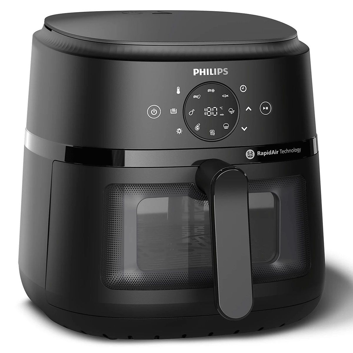The compact design is ideal for every kitchen large or small. Holds up to 800 g of fries, 8 chicken drumsticks or 800 g of vegetables in. 6.2-liter pan.