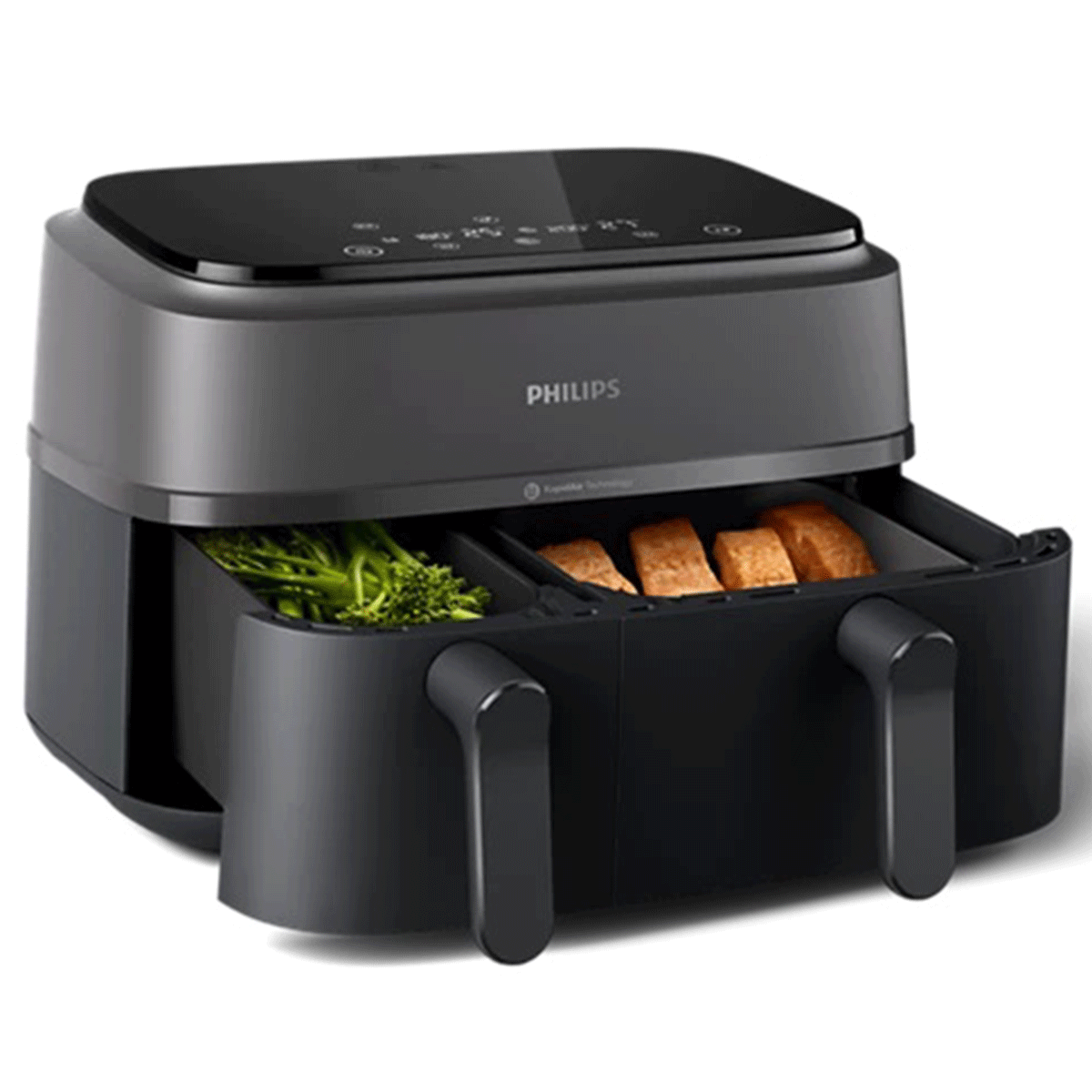 2 drawer air fryers: The large drawer is perfect for mains, fries, and whatever you love most. Use the smaller drawer for sides, veggies, and snacks.