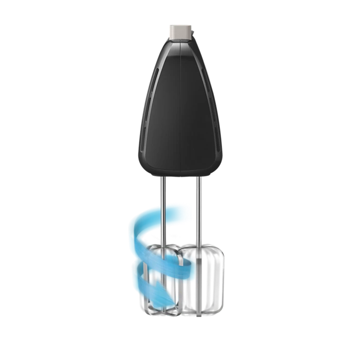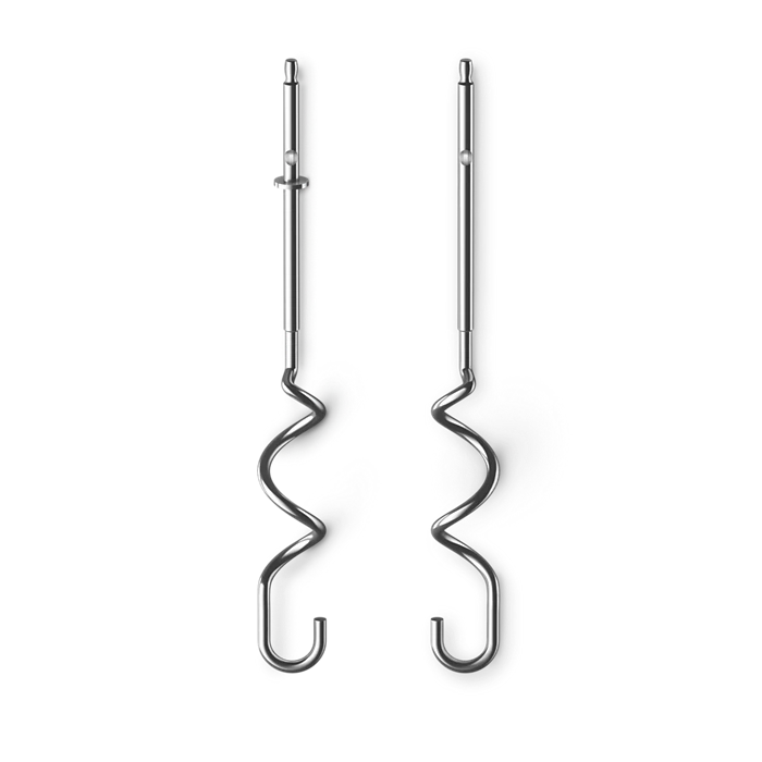 The mixer comes with two pairs of beaters in high-quality, dishwasher-safe stainless steel.
