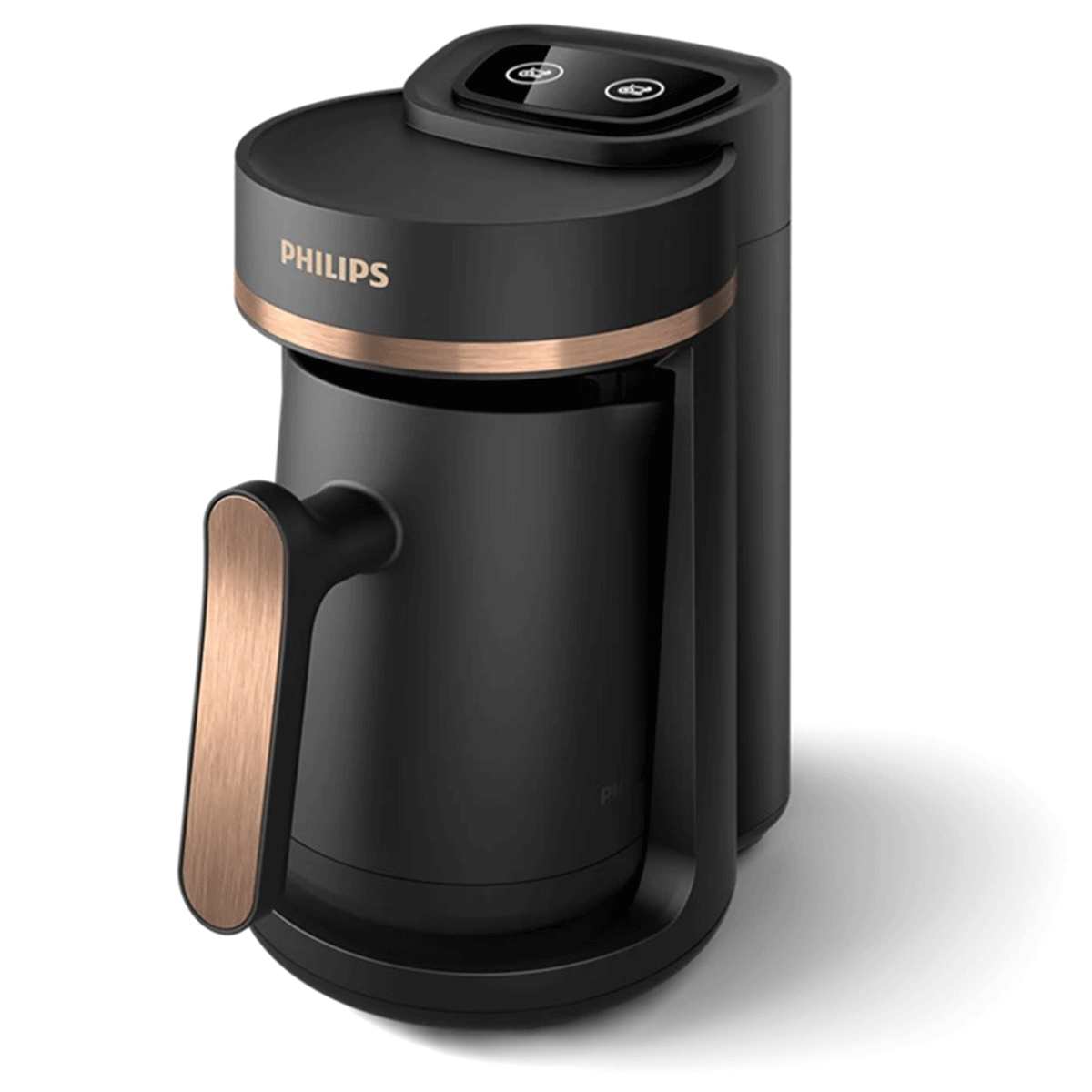 Philips Turkish Coffee Maker for great tasting traditional Turkish coffee, fuss-free. With overflow and overheat protection and a 4-cup capacity to serve friends and family. Choose regular or slow brew and it will notify you when ready.