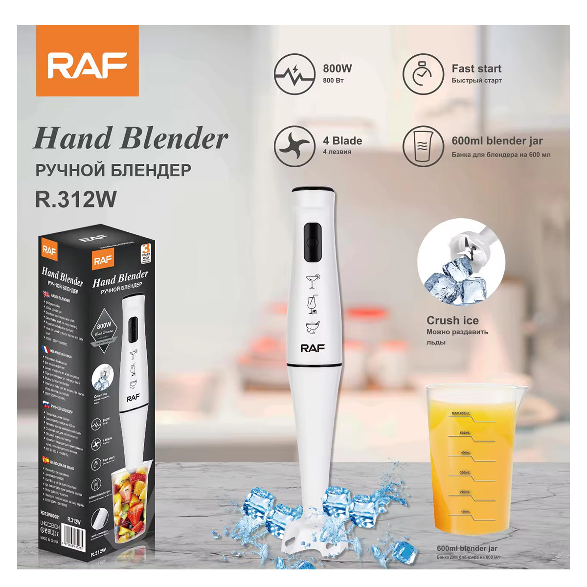 Step 1: Filtered productAttributes: - With Grinder: Yes - Power (watt/horsepower): 550 watts to 1000 watts - categoryPath: Home Appliances>Small Kitchen Appliances>Food Preparation>Blenders - Imported: China - Jug Material: Plastic - productTitle: RAF Hand blender Imported Best Quality R.312 - Horse Power: 800watt - Model: R.312 - Capacity (ML): 500-1000ml - Color Family: Black And White - Settings: Mix Step 2: additionalKeyWords: None Step 3: Introducing the RAF Hand blender Imported Best Quality R.312, a powerful kitchen appliance designed to make food preparation a breeze. With a robust 800watt motor and a jug capacity of 500-1000ml, this blender is perfect for mixing, blending, and grinding various ingredients. The sleek black and white design adds a modern touch to any kitchen. Imported from China, this blender is equipped with a plastic jug and a grinder for added convenience. Whether you're whipping up smoothies, sauces, or soups, the RAF Hand blender R.312 is a versatile and reliable choice for any home chef. Step 4: The tone of voice is in accordance with Informative. Final Product Description: Introducing the RAF Hand blender Imported Best Quality R.312, a powerful kitchen appliance designed to make food preparation a breeze. With a robust 800watt motor and a jug capacity of 500-1000ml, this blender is perfect for mixing, blending, and grinding various ingredients. The sleek black and white design adds a modern touch to any kitchen. Imported from China, this blender is equipped with a plastic jug and a grinder for added convenience. Whether you're whipping up smoothies, sauces, or soups, the RAF Hand blender R.312 is a versatile and reliable choice for any home chef.