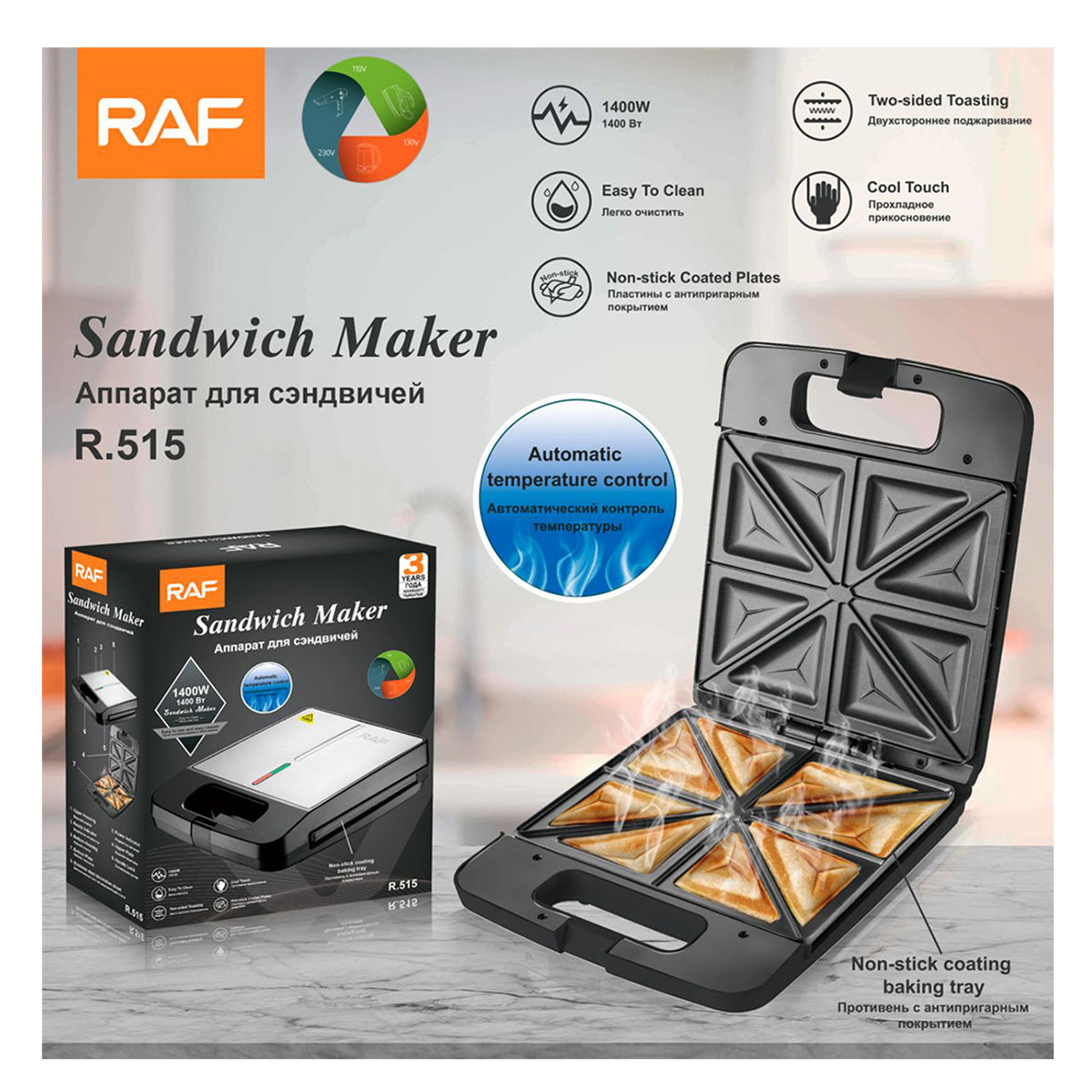 RAF Sandwich Maker R-515 1400W 2 Slice Non-stick Surface Imported