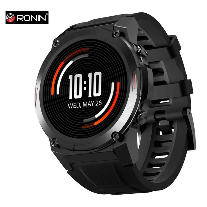 Ronin R-011 Smart Watch Black With Black Dial +1 Free Green Silicon Strap (Always On Display)