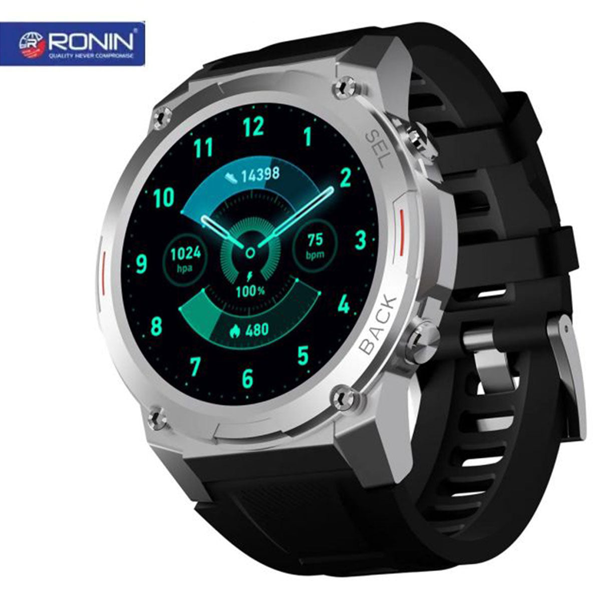 Ronin R-011 Smart Watch Black With Silver Dial +1 Free Orange Silicon Strap (Always On Display)