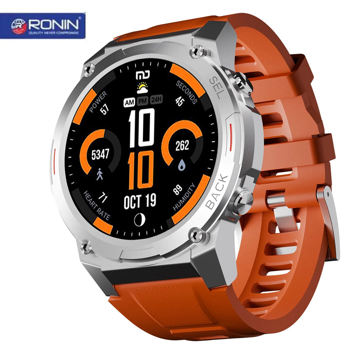 Ronin R-011 Smart Watch Black With Silver Dial +1 Free Orange Silicon Strap (Always On Display) (Copy)