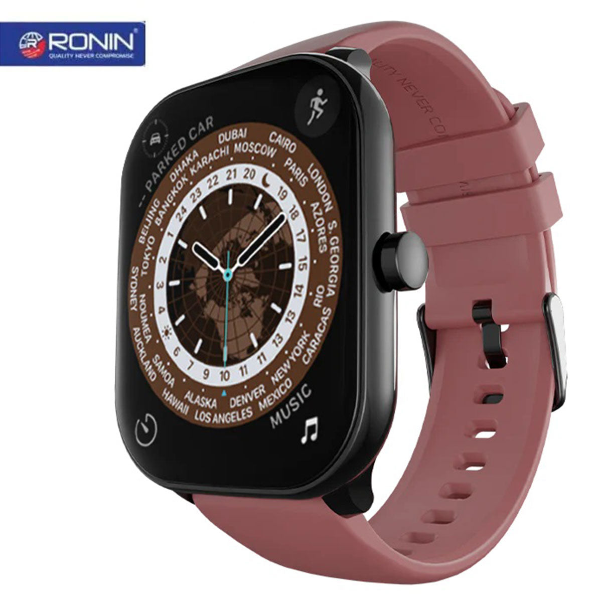 Ronin R-06 Smart Watch Amoled Big Always Active Display + 1 FREE Black Strap With Every Watch (Black_Maroon)