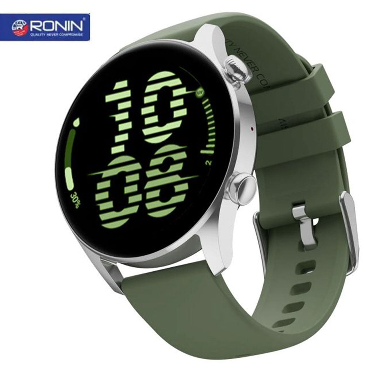 Ronin R-08 Always On Display Smart Watch +1 Free Black Strap with Every Watch (Silver-Glass Green)