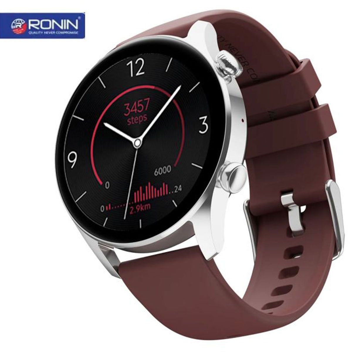 Ronin R-08 Always On Display Smart Watch +1 Free Black Strap with Every Watch (Silver-Maroon)