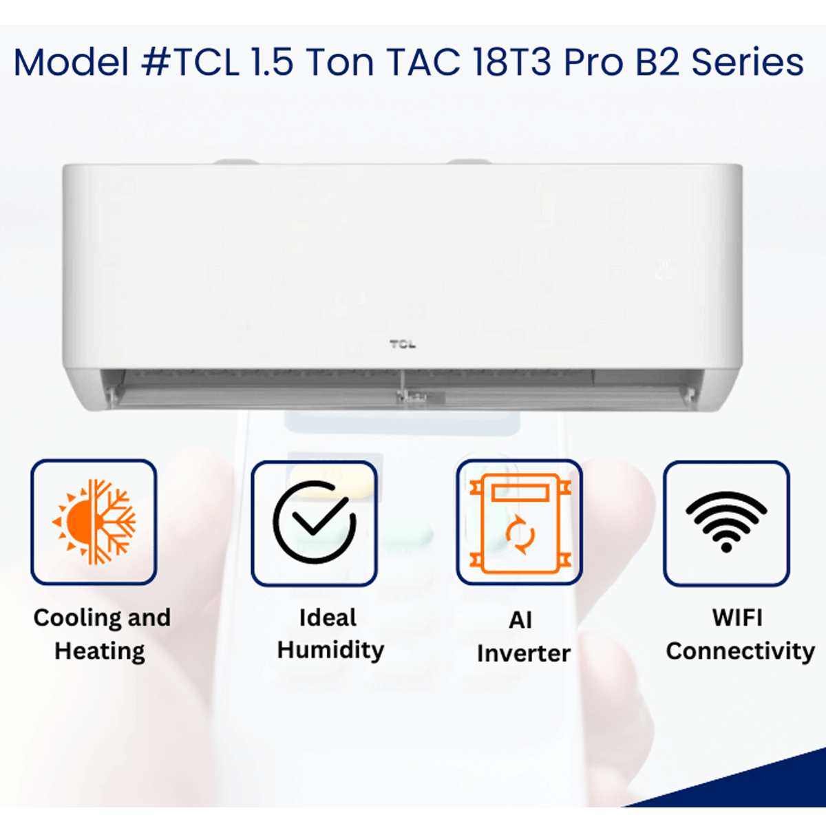 TCL brings the all-new T - Pro DC Inverter AC with IOT Wifi lets you enjoy a completely controlled refreshment. You can adjust the temperature, and turn the AC off or on at any time/anywhere through the TCL Home App. You could also control the AC through the Hands-Free Voice Control feature on your TCL TV. With its Smart Air Flow, the AC evenly distributes Cold and Hot air throughout which ensures coverage in all corners of the room. In Pakistan where temperatures in summer are clocking above 50 degrees, TCL T Pro’s Air-cooled electric box technology ensures nonstop cooling.