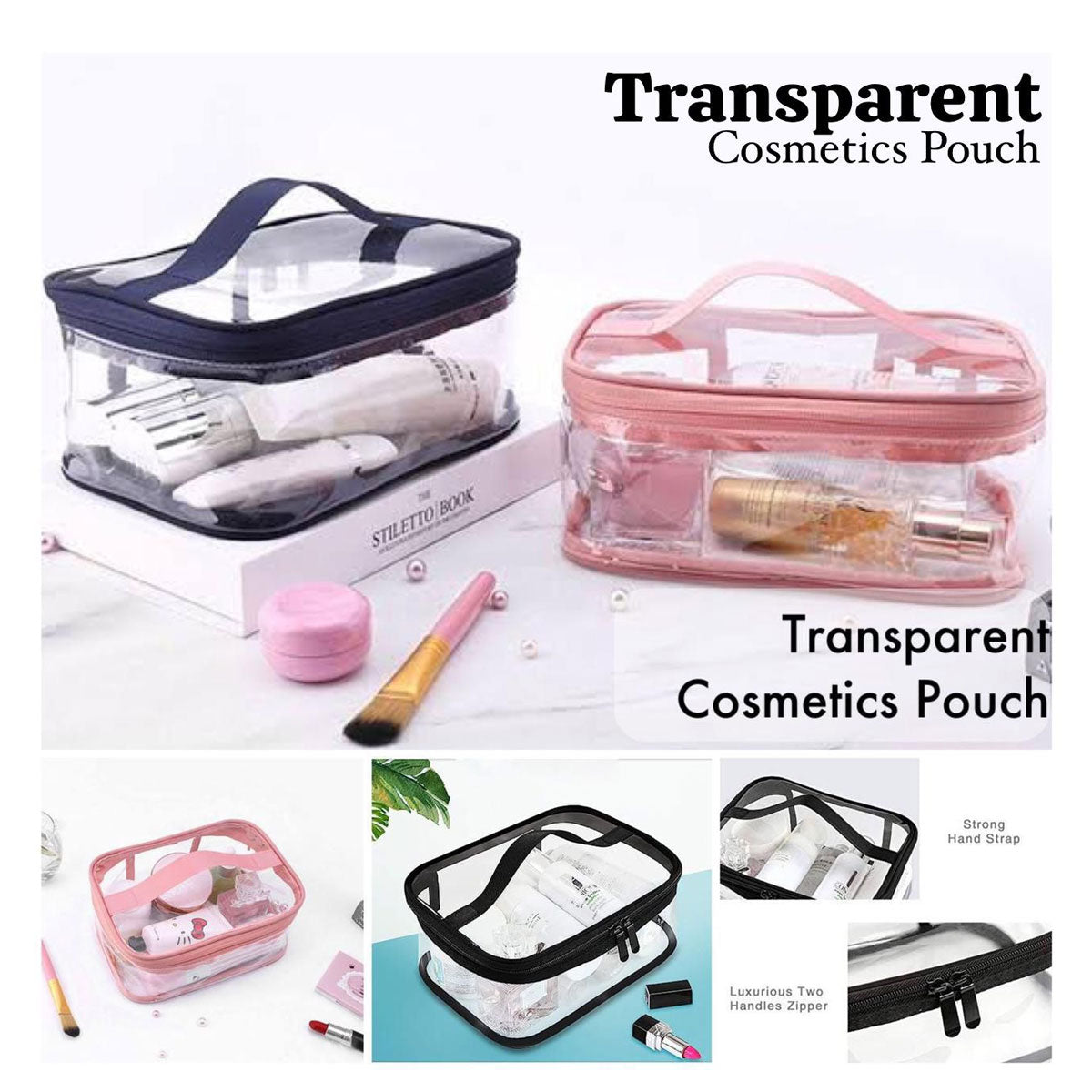 Transparent Zip Cosmetics Pouch (Size: 10” x 8” x 4”) 2 Colors