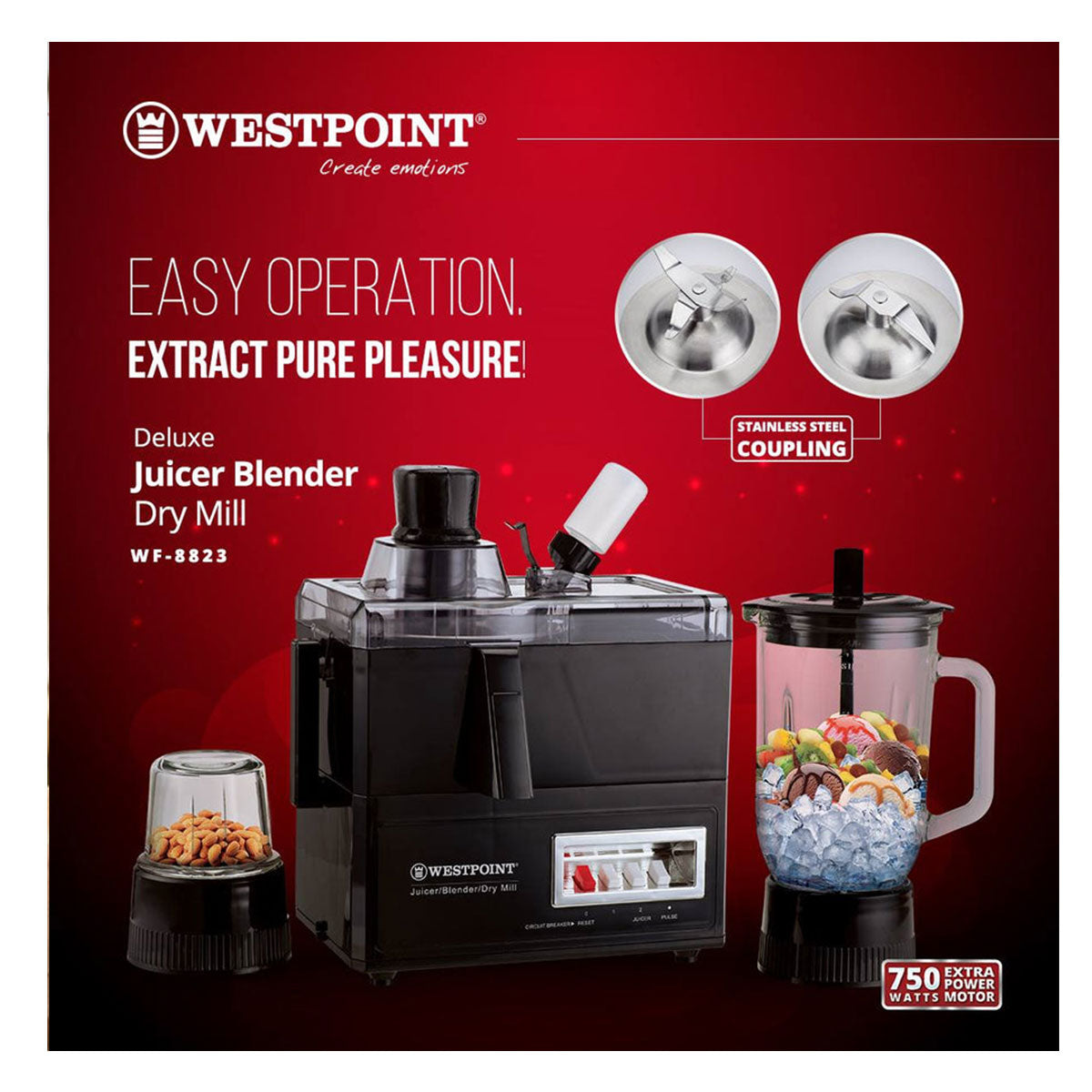 Westpoint juicer is ideal for grinding and greasing all kinds of things in a matter of seconds. The most difficult ingredients such as coconut, spices, or even spices will not be a problem for Westpoint appliances. Buy juicer online. It's the perfect solution to all your kitchen issues. Cleanliness and various speed options are the most basic functions of this elegant machine—reasonable juicer machine price in Pakistan.